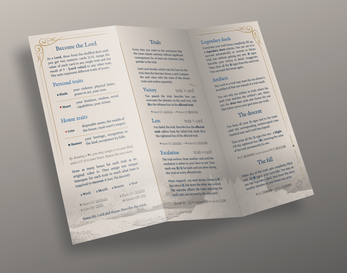 Use these traits to partake in trials. You were once a hero; you know how to behave at a royal court and you remember, what to do in the darkest dungeons. Recall those times and perform legendary deeds to overcome even the impossible. But beware, for every failure marks you, and the descent is inevitable.